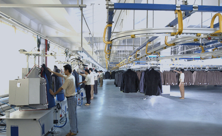 運用高品質的德國BRISAY立模整燙機,采用電腦控制蒸汽輸出量、溫度、壓力、定型、抽濕時間,根據(jù)面料的厚薄、質地、性能,以38種不同整燙程序調整以上各個參數(shù),配合服裝的整燙。